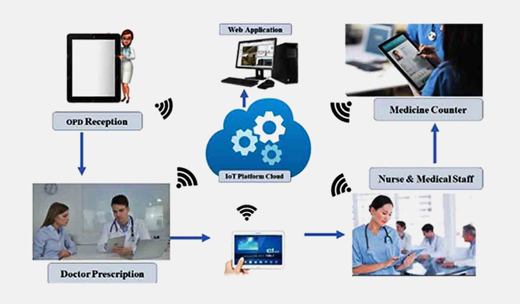 In this system one Android/IOS based application will work in background which will synchronize between the doctor and medicine counter. By using IoT based PRMS an appointment will be created from OPD reception for a patient by using patient mobile number and his/her name with address. In real-time basis same information will be raise at Doctor desk with assigned a number, Patient will go according to turn